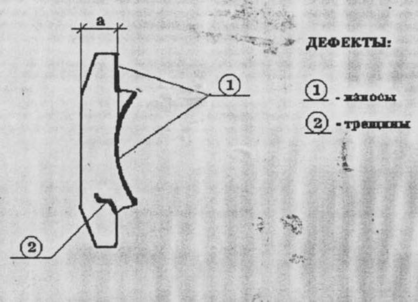| Разрушение стенок отверстия для клина | Наплавка дуговая Э42 и Э46, порошковой проволокой или в среде защитного газа. | Ширина наружной перемычки должна быть не менее 45 мм |
