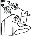 толщину замыкающей части замка по всей её высоте проверяют до ремонта непроходным шаблоном 899р; Замок признают годным после ремонта, если замыкающая часть его не входит вырез б шаблона 852р и негодным, если она входит в вырез б шаблона 852р (поз. 2)