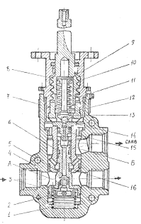Предохранительный клапан представляет собой механизм с серводействием и состоит из двух основных узлов: чувствительного элемента и сервоклапана. Конструкция клапана изображена на рис.8.
