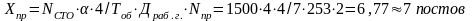 Рср – среднее число рабочих, одновременно работающих на посту.