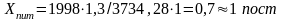 η - коэффициент использования рабочего времени поста, принимаем η=0,87.