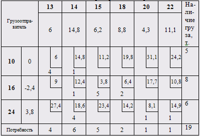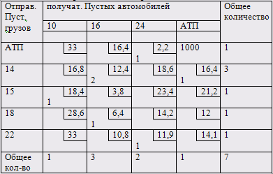 Для оптимизации перевозочного процесса необходимо минимизировать пробег автомобиля на маршруте, для этого необходимо решить транспортную задачу. Пользуясь методом потенциалов, находим для данной задачи оптимальный план распределения: