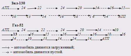 Расчет топлива показал, что Газ-52 предпочтительнее для перевозок, поэтому дальнейшие расчеты ведем для этой марки. Рассчитаем время, затрачиваемое автомобилем на оборот.
