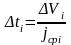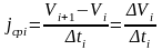 При изменении скорости от Vi до Vi+1 среднее ускорение может быть определено: