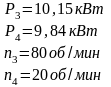 | №вала | Р кВт | n об/мин |