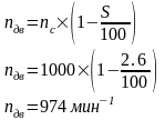 Определяем асинхронную частоту вращения: