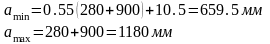 Рассчитываем межосевое расстояние ременной передачи, и назначаем в интервале: