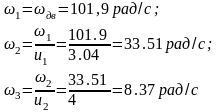 Определяем угловую частоту вращения каждого вала: