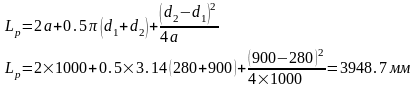 Определяем длину ремня по формуле: