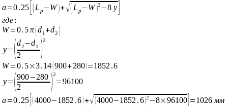 Принимаем длину ремня 4000мм.Уточняем межосевое расстояние: