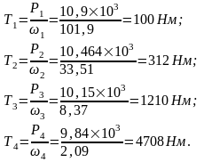 Определяем крутящие моменты на валах привода: