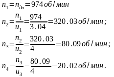 Определяем частоту вращения каждого вала: