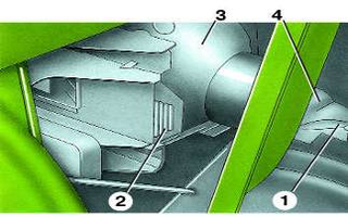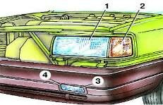 Рис. 2.1. Передня фара автомобіля, покажчик повороту 1- фара; 2 - покажчик повороту; 3 - протитуманна фара; 4 - декоративна рамка протитуманної фари
