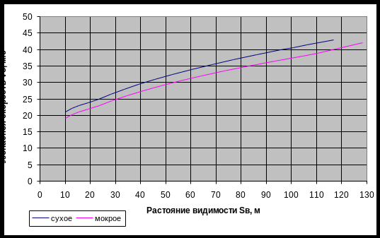 Для различных условий видимости определяется безопасная скорость Vб и строятся графики зависимости Vб = f(Sв).