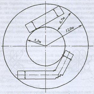 Для некоторых групп автомобилей могут нормироваться другие показатели, тесно связанные с углом поворота управляемых колес. Так, для автобусов согласно ГОСТ 27815-88 (Правила ЕЭК ООН № 36) «Автобусы. Общие требования к безопасности конструкции» нормируется их маневренность. Требования состоят в том, что при движении на повороте в любом направлении (рис. 3.2) автобус должен полностью вмещаться (по наиболее выступающей точке кузова или бампера) в окружность радиусом 12 м.