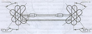 Максимальный поворот рулевого колеса не должен ограничиваться никакими устройствами кроме тех, что предусмотрены конструкцией автомобиля. Его значения должны соответствовать требованиям завода-изготовителя прежде всего по параметру максимального угла поворота управляемых колес. Так, например, для автомобиля ГАЗ-33021 («Газель») наибольшие углы поворота управляемых колес (рис. 3.1) должны составлять от 43 до 45° и от 32 до 34° для наружного и внутреннего колес соответственно.