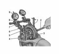 Проверяю состояние упорного винта 3 (рис. 4.6), пружины 6, опорной чашки 7 и сухарей 5. При необходимости произвожу замену поврежденных деталей новыми. Также необходима замена уплотнителей 8 новыми. Проверяю состояние защитных колпачков 10 и при необходимости заменяю их.