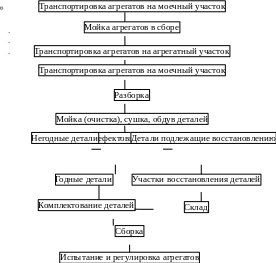 Текущий ремонт агрегатов, узлов выполняется в том случае, когда невозможно восстановить их эксплуатационные показатели регулировочными работами. Общая схема технологического процесса текущего ремонта приведена на рисунке 3.3.