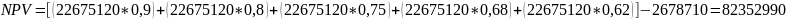 | 2.Расчетный период () 3.Инвестиции (I) 4.Косвенный экономический эффект () 5.Интегральный экономический эффект () 6.Индекс рентабельности () 7.Срок окупаемости инвестиций (DPP) 8.Коэффициент эффективности инвестиций () 9.Годовой экономический эффект () | 10 5 2678710 2 16 |