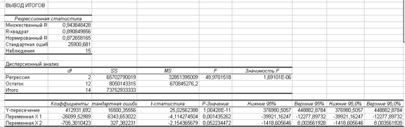 Далее оценщик построил двухфакторную регрессионную модель, одновременно отражающую влияние обоих факторов