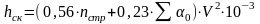 Величину hwсв (витрачена енергетична висота на подолання опору середовища та вітру) було визначено за формулою
