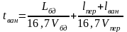 lпас, lпр, lван - довжина пасажирського, приміського і вантажного поїздів, приймаємо згідно з формулами 3.4 та 3.5. Vпер - швидкість руху поїздів по перетину, для пасажирських і приміських Vпер = 40 км/год, для вантажних Vпер = 35 км/год.