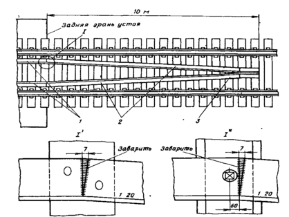 , г. Ржев) могут применят как уравнительные припоры типа Р-65, так и сезонные уравнительные рельсы (4 пары).