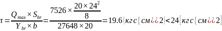Вывод: проверка выполняется, расчётные напряжения меньше предельных, данное сечение мостобрусса подходит для заданной нагрузки на ось.