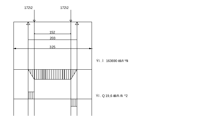 К расчёту назначено металлический мост с полотном на деревянных поперечинах (конструктивная схема см. рис. 5.), с расстоянием между балками В=2,03 (м). Нагрузка составляет 172 (кН/ось).