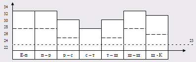 Построение графика начинается с нанесения на однопутный участок Е – К оптимального варианта местной работы. Затем намечается пропуск скорых пассажирских и пригородных поездов, следует учесть, что скорые поезда на промежуточных станциях участка стоянок не имеют, а на станциях Е, Д, К, для обслуживания пассажиров стоят 10 мин. Пассажирские поезда на каждой промежуточной станции имеют стоянку по 2 мин и на станциях Е, Д, К, по 10 мин. Пригородные поезда на каждой промежуточной станции стоят по 1 мин, на станции оборота пригородных составов 10 мин.