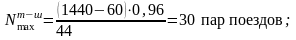 Nгрт-ш = 30 – 1,4 2 – 1,4 1 – (1,8 – 1) 1 = 25 пар поездов;