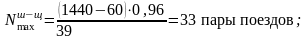 Nгрш-щ = 33 – 1,4 2 – 1,4 1 – (1,8 – 1) 1 = 28 пар поездов;