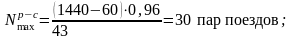 Nгрр-с = 30 – 1,4 2 – 1,4 1 – (1,8 – 1) 1 = 25 пар поездов;