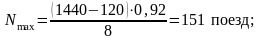 Nгр = 151 – 1,4 4 – 1,4 2 – (1,8 – 1) 2 = 141 поезд;