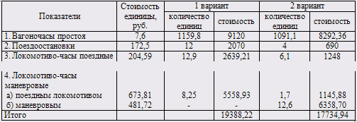 По результатам расчётов мы видим, что оптимальным вариантом местной работы является 2 вариант (с использованием диспетчерских локомотивов), так как стоимость этого варианта меньше чем 1 вариант на 1653,28 руб.