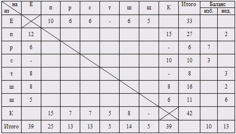 Составляем косую таблицу суточной погрузки и выгрузки и определяем баланс порожних вагонов для каждой промежуточной станции