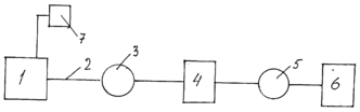 1-топливный бак, 2-трубки топливопровода, 3-фильтр отстойник, 4-топливный насос, 5-фильтр тонкой отчистки, 6-карбюратор, 7-датчик указателя уровня топлива.