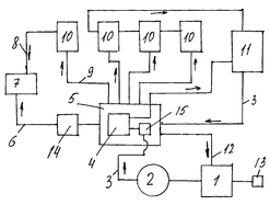 Излишки топлива, подаваемого топливоподкачивающим насосом 4 к насосу высокого давления, отводя через трубку перепускного клапана 8 топливного насоса высокого давления обратно в топливный бак по трубопроводам 12.