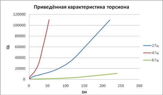 Расчет ведется для 16 точек характеристики, равномерно расположенных по углу закрутки торсиона.