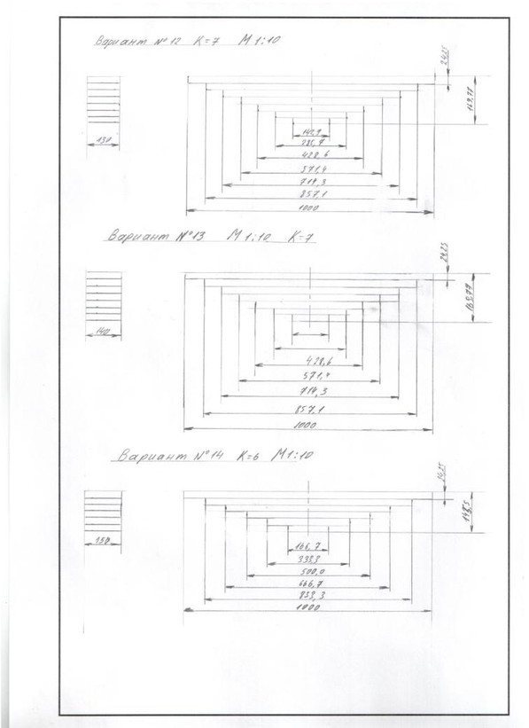 L( 4)= 571,4 MM; L( 5)= 714,3 MM; L( 6)= 857,1 MM;