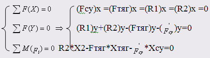 Из уравнений проекций сил на ось Y определим нагрузку на сцепное устройство: