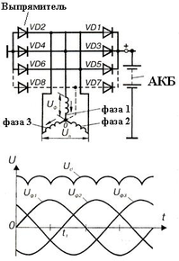 Назначение выпрямителя – преобразовать трёхфазное переменное напряжение в постоянное. В современных генераторах уже имеется встроенный выпрямитель.