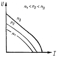 Частота вращения вала генератора, при которой его напряжение U достигает номинального значения, получила название частоты вращения холостого хода nх или частоты начала отдачи мощности.