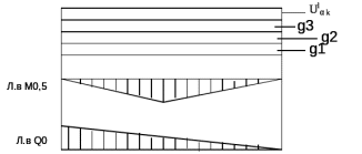 ,кН определяют с использованием линий влияния этих усилий по формулам: