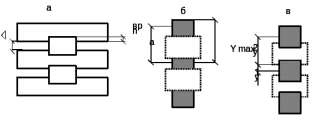 - расстояния от оси, проходящей через центр тяжести среднего бруса, соответственно до оси, проходящей через центр нижнего и верхнего брусьев, м.