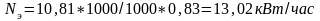 где = коэффициент, учитывающий непредвиденные расходы энергии,(0,1-0,2).