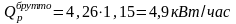 Qот = Q1 – Q2+ Q3+Q4- Q5,кВт (23)