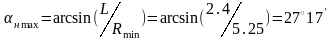 Максимальный угол поворота наружного колеса определяется по формуле: