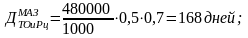Дни эксплуатации за цикл (Дэц) определяются следующим образом: