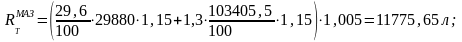для автомобиля МАЗ-53363 дополнительный расход топлива на 100 т-км принимаем до 1,3л;